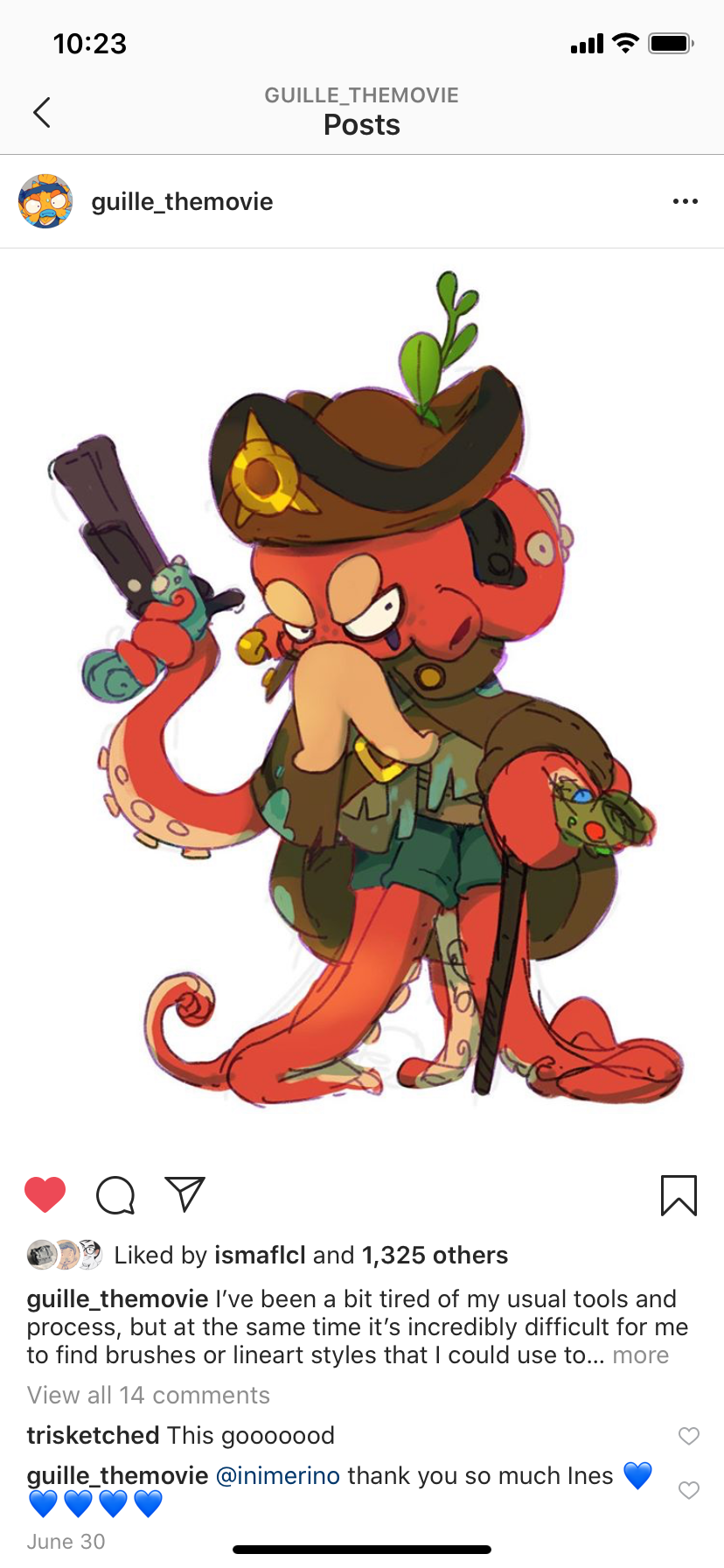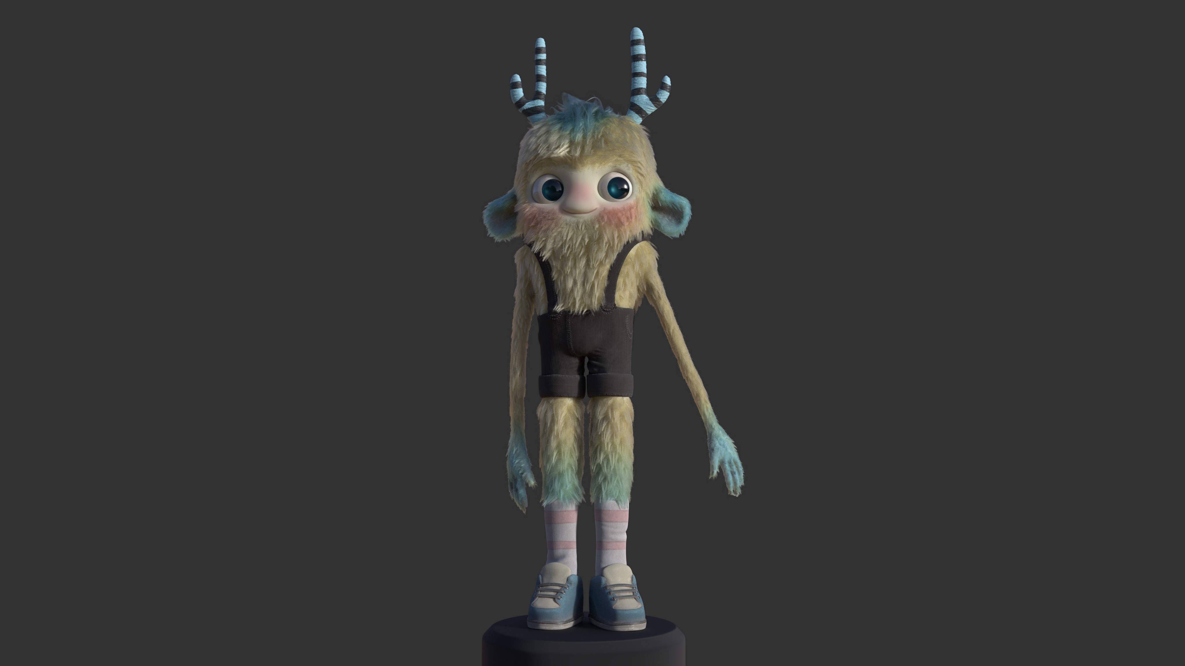 The concept for this character is by @guille_themovie on instagram. I contacted them to be able to create a 3D version of their character. I loved the color and personality and really wanted to give it a shot. I'm not a character modeler but i really wanted to texture and shade this so i decided to give it a go. I always like pushing my skills in new directions.